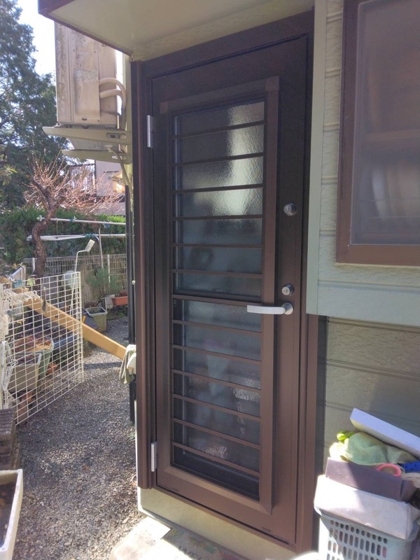 1ロック仕様で断熱パネルタイプの勝手口ドアでした。夏場の湿気や調理時の熱を逃がしたり、お料理後のニオイがこもるので換気をしつつ、光も取り込める勝手口ドアを検討されておりました。最近の目を覆いたくなるような事件も相まって防犯性能はとにかくUPしたいともご要望がありました。
