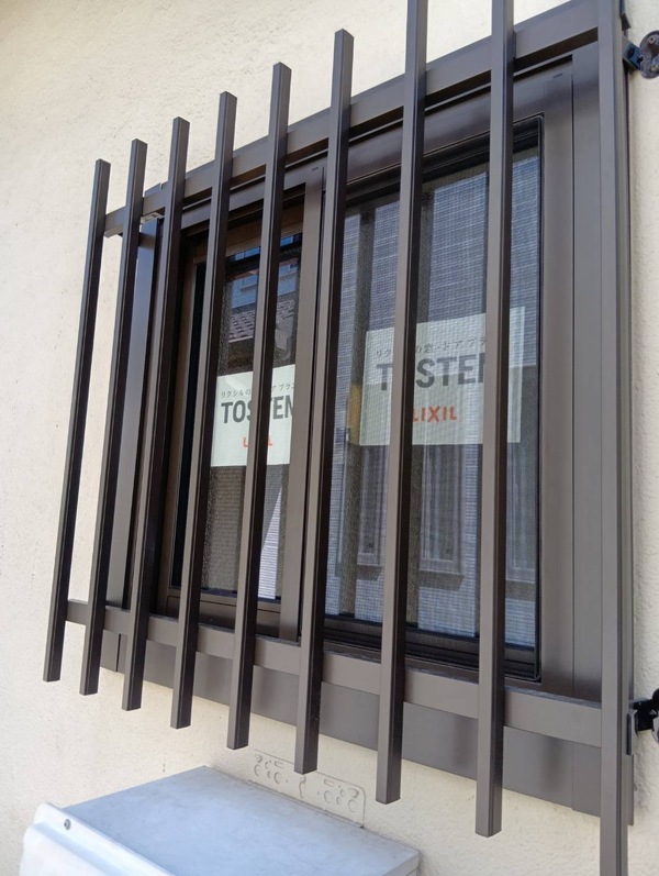LIXILのリプラスのペアガラス窓にカバー工法で交換し、断熱性能が大きく向上。さらに縦格子の面格子を取付けることで、防犯性も確保。寒さと空き巣対策の両立ができた安心の窓まわりになりました。