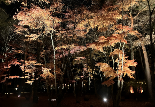 慶事と重なった連休を使って軽井沢に行きました。8月のハイシーズンより少し落ち着いたこの時期は、気温も下がりはじめていて夜は寒いくらいです。新幹線を乗り継いで向かった目的は紅葉のライトアップ。赤や黄に染まった木々が、ライトアップの光によって浮かび上がる光景は、まるで別世界にいる気分になりました。空気も澄んでいて、写真よりも記憶に残る景色になりました。