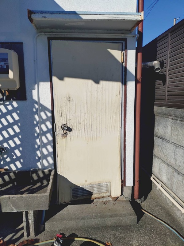 既存の木製框ドアは、長年の雨風で表面が劣化し、反りによって開閉が重くなり、カギも掛かりにくく防犯面でも不安が残る状態でした。特に裏口や物置は使用頻度が高く、毎回の開け閉めがストレスになっていました。