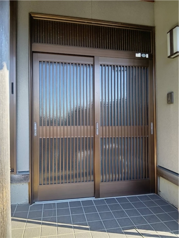 経年劣化により、玄関引戸の動きが重く、見た目も暗い印象になっていました。防犯面でも古い鍵のままで不安があり、日本家屋らしさはあるものの、全体的にくたびれた印象になりがちな玄関でした。